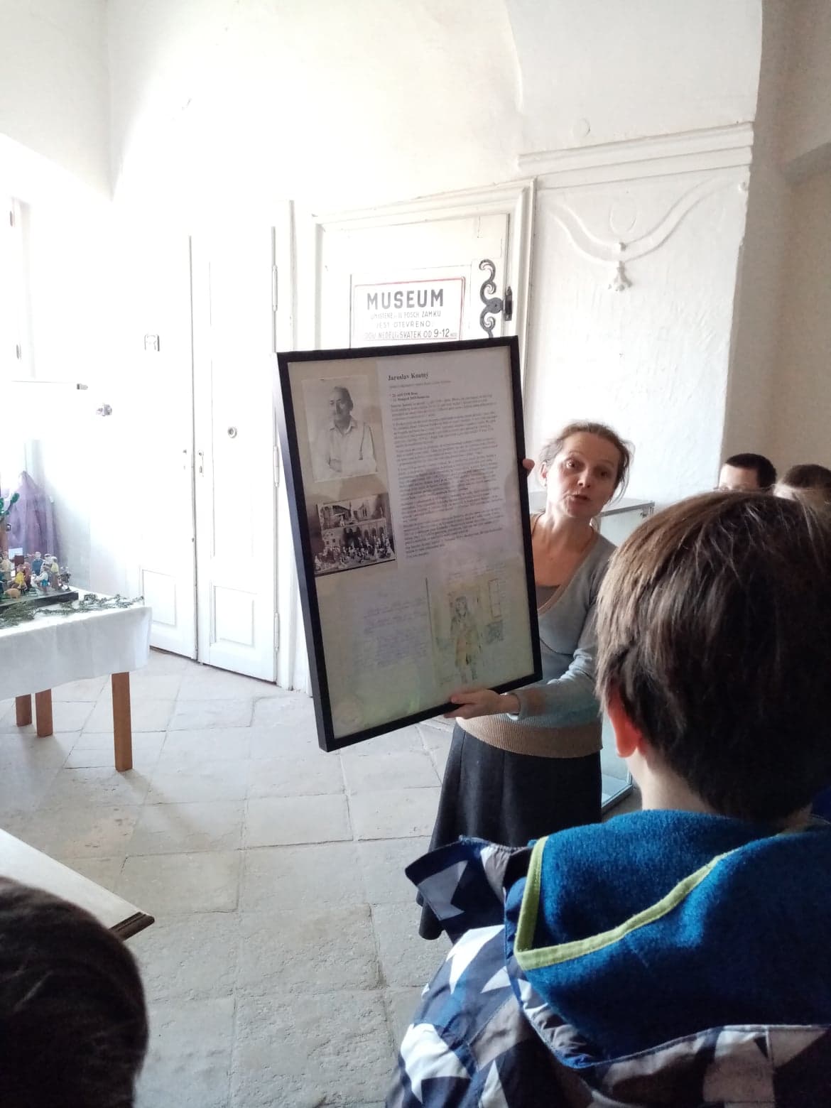 Betlém zasazený do židovské čtvrti znázorňuje boskovické reálie a obyvatele města z 30. a 40. let. minulého století. Autor Jaroslav Koutný doplnil betlém vzpomínkami ke každé znázorněné postavě.