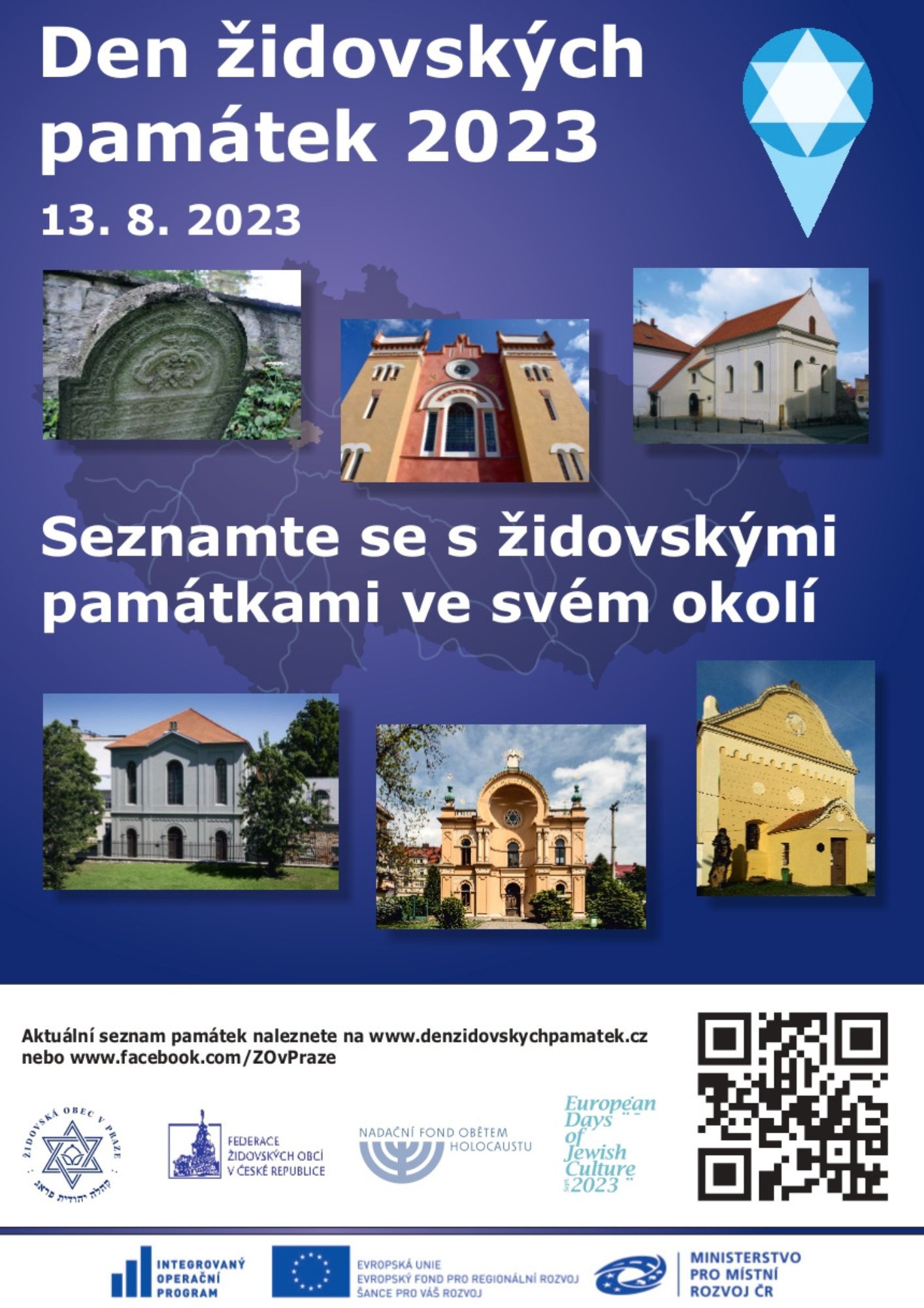 I my se opět připojujeme ke Dni židovských památek v ČR. Letos připadá na neděli 13. srpna 2023. Zcela zdarma nebo za dobrovolné či symbolické vstupné bude zpřístupněno 55 vybraných židovských památek v Čechách, na Moravě a Slezsku a návštěvníci tak budou mít možnost navštívit hřbitovy a synagogy, které nejsou volně přístupné, nebo prošly v posledních letech nákladnou opravou. Mezi největší lákadla letošního roku patří nově rekonstruovaná synagoga v Čáslavi, nebo nedávno rekonstruovaná synagoga v Polici u Jemnice. I v letošním roce je na některých místech připraven doprovodný program, který většinou spočívá v komentovaných prohlídkách nebo přednáškách. Využít jej můžete například v Neveklově, Pacově nebo Turnově.