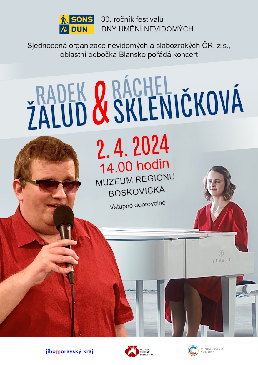 Zveme do hraběcí rezidence na tradiční koncert Sjednocené organizace nevidomých a slabozrakých. Koncert se uskuteční v muzejním sále na Hradní 1 v Boskovicích.